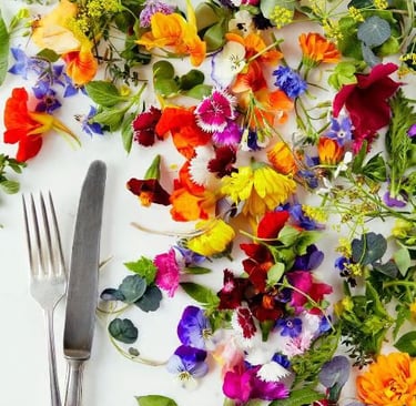 هي أزهار يمكن للإنسان أن يستهلكها بأمان. لقد تم استخدامها في الطبخ والطب لعدة قرون عبر مختلف الثقافات. يمكن للزهور الصالحة للأكل أن تضيف اللون والنكهة والرائحة إلى الأطباق، مما يجعلها جميلة ولكنها أيضًا لذيذة وعطرية.